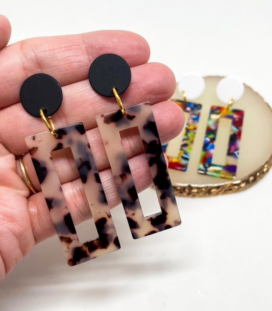 Dangle Earrings - Tortoise Shell Rectangles