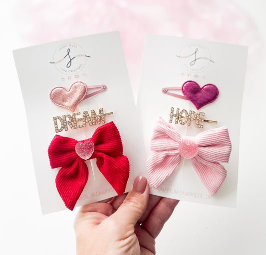 Trio Bow / Hair Clip Sets - Hearts