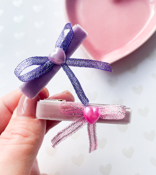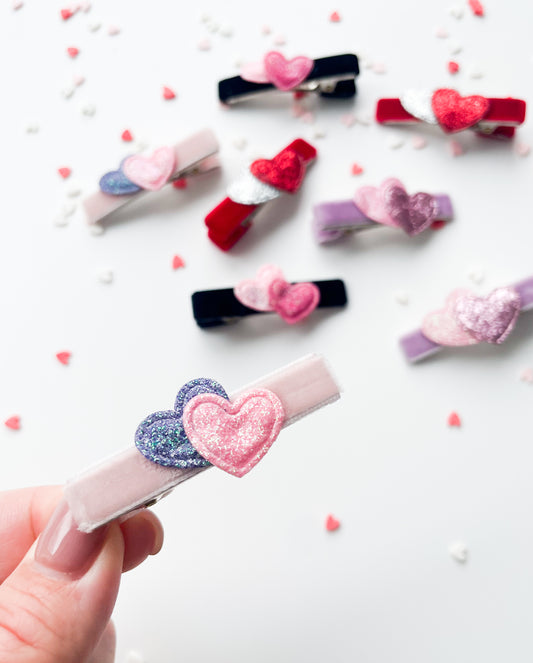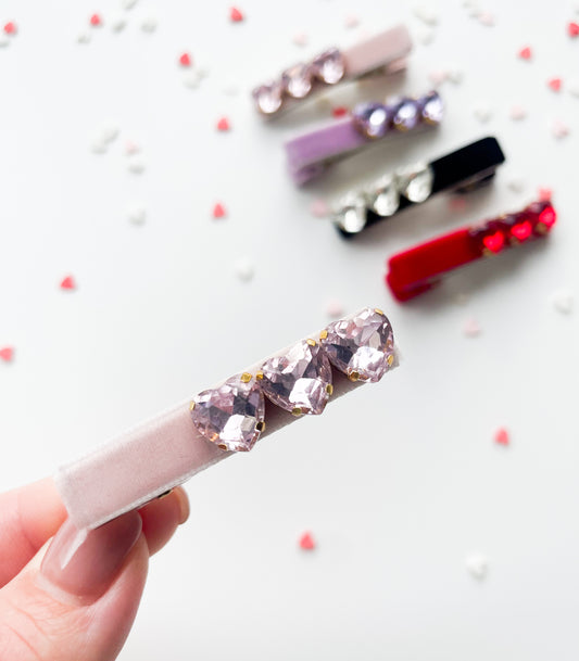 Alligator Bar Clips - Velvet Rhinestone Hearts