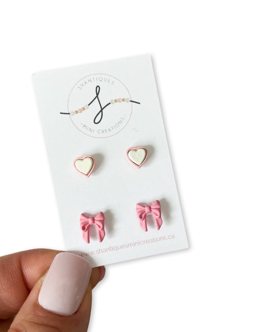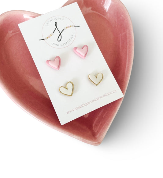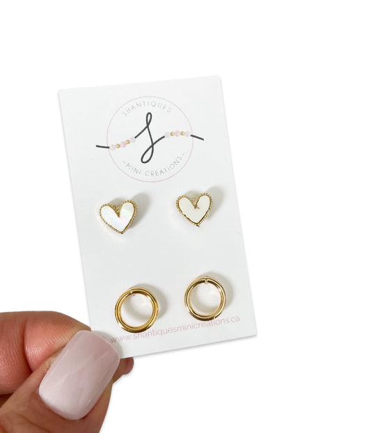 Duo Earrings - 14K Gold Plated Circles/White Hearts