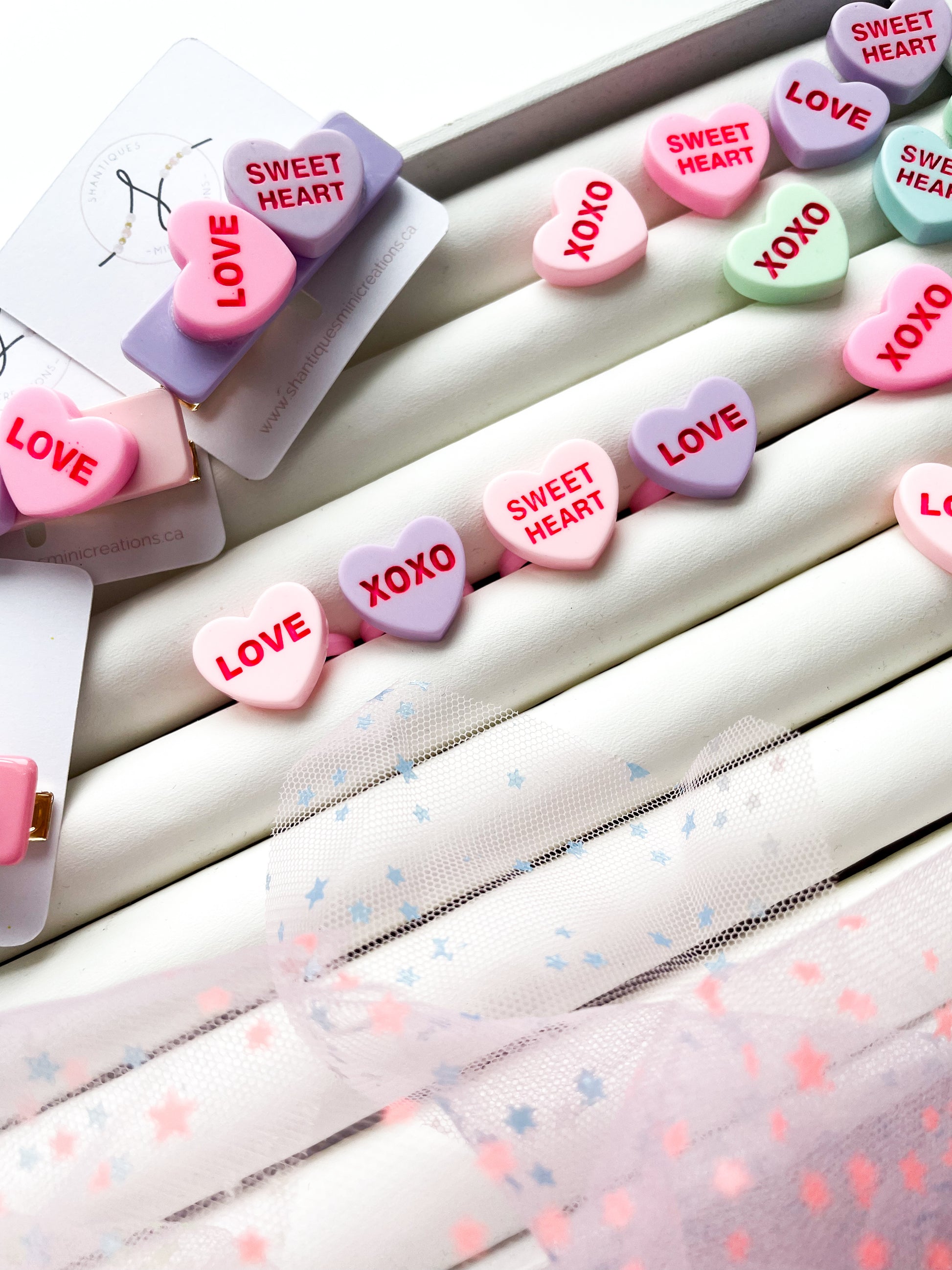 **Please note the phrase and colour of the conversation hearts will vary slightly from the picture (please specify if you want specific words and colours - word options are Love, XOXO, Sweetheart)